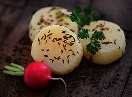 Diese kleinen schwarzen Linsen ähneln dem Beluga-Kaviar und schmecken würzig-aromatisch. Sie garen ohne einzuweichen und verkochen nicht, was sie gut für Salate macht.
