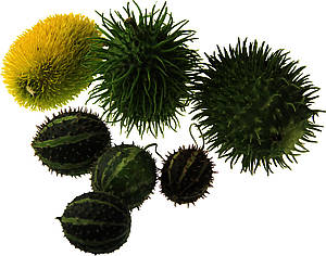 Nicht zum Verzehr geeignet! Verschiedenförmige, kleinkalibrige Kürbisvariationen von gelb bis grün. Zu Zierzwecken mit sehr langer Lagerfähigkeit. Wird auch als Cucumis bezeichnet.
